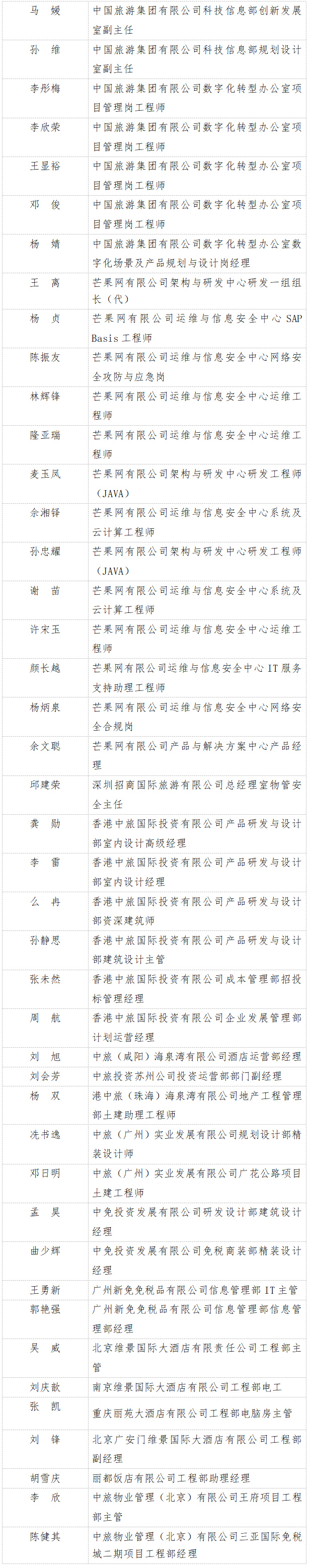 根據《中國旅游集團有限公司會計、工程系列高級職稱評審暫行辦法》《中國旅游集團有限公司工程系列初、中級職稱評審暫行辦法》規定,按照《關于開展2022年度中國旅游集團工程系列職稱評審工作的通知》(中國旅游集團人通〔2022〕151號)工作安排,現將2022年度集團工程系列職稱評審結果予以公示。