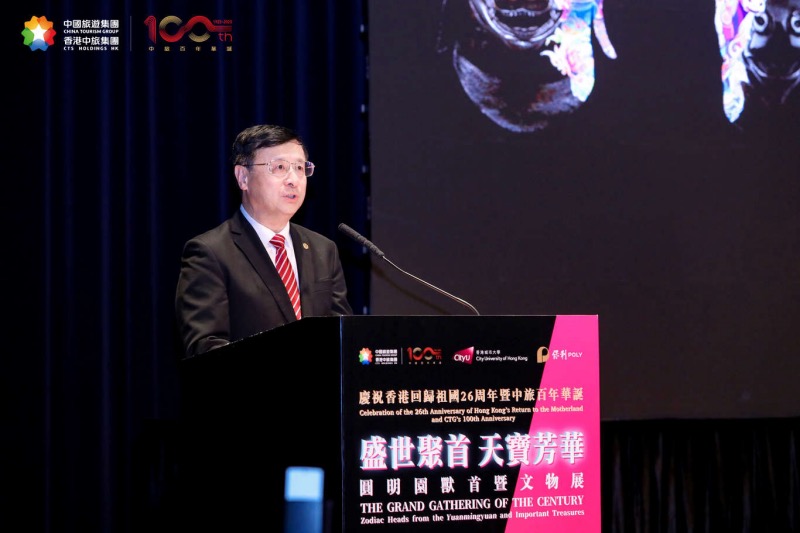 7月3日,“盛世聚首?天寶芳華---慶祝香港回歸祖國26周年暨中旅百年華誕圓明園國寶獸首文物展開幕典禮”在香港城市大學順利舉行。來自國家有關部委領導、香港特區政府有關官員、港澳地區各界精英、賢達名流、中國旅游集團合作伙伴、旅游同業等約三百人出席盛事,見證了這一難忘時刻。