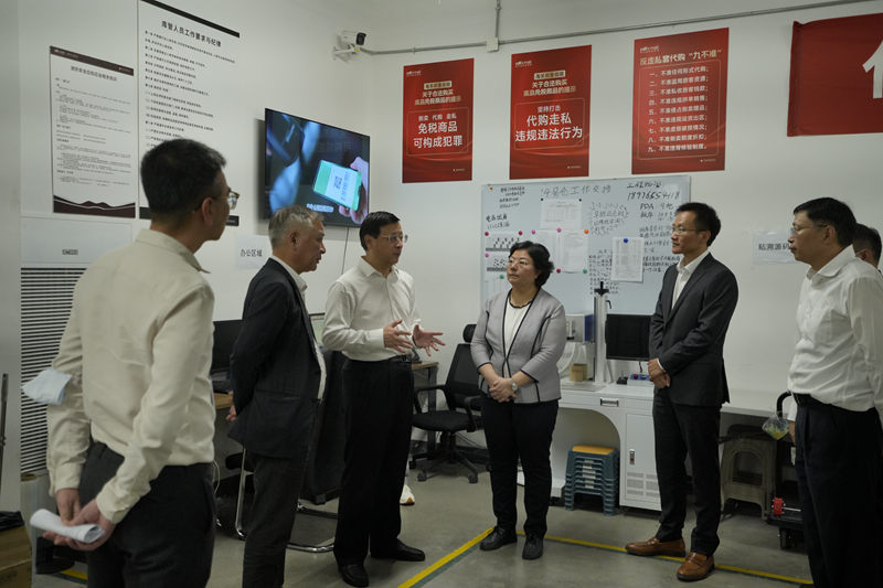 在三亞國際免稅城,陳董深入香化區(qū)、物流分揀倉及視頻監(jiān)控室進(jìn)行實(shí)地檢查,重點(diǎn)了解免稅品銷售及物流環(huán)節(jié)各風(fēng)險(xiǎn)點(diǎn)的防控情況、員工教育培訓(xùn)情況、與監(jiān)管部門聯(lián)防聯(lián)控等情況。他強(qiáng)調(diào),作為深耕海南的中央企業(yè),要進(jìn)一步提高政治站位,清醒認(rèn)識立行立改,抓好深化整治免稅品“套代購”工作的極端重要性,始終保持高度緊迫感和責(zé)任感,層層壓實(shí)主體責(zé)任,健全工作機(jī)制,確保各項(xiàng)工作要求傳達(dá)到位、責(zé)任落實(shí)到人,將防范打擊“套代購”和推動生產(chǎn)經(jīng)營兩手抓;同時(shí)要持續(xù)關(guān)注“即購即提”政策的開展,及時(shí)向政府相關(guān)部門反饋旅客消費(fèi)習(xí)慣變化,助力并推動政策進(jìn)一步完善,為海南國際旅游消費(fèi)中心建設(shè)持續(xù)輸出力量。在配合地方政府聯(lián)防聯(lián)控工作方面,要進(jìn)一步加強(qiáng)與海關(guān)、緝私部門的合作協(xié)同,保持信息聯(lián)絡(luò)暢通,通過信息系統(tǒng)技術(shù)手段進(jìn)行大數(shù)據(jù)篩查,及時(shí)報(bào)送、更新“黑名單”信息,做好“套代購”不法分子的攔截工作;對于經(jīng)營場所內(nèi)的異常行為,例如疑似“套代購”人員聚集等,要及時(shí)與駐店海關(guān)、緝私部門溝通匯報(bào),一定要杜絕顯性、表面、成團(tuán)伙“套代購”現(xiàn)象發(fā)生,全力配合做好聯(lián)防聯(lián)控工作。