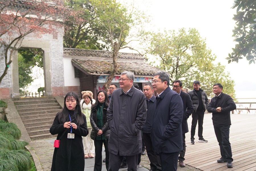 在千島湖,王總現(xiàn)場聽取了關(guān)于大排檔和秀水街兩個(gè)升級(jí)改造項(xiàng)目匯報(bào),實(shí)地考察了中心湖區(qū)龍山島、梅峰島。調(diào)研過程中,王總就千島湖項(xiàng)目后續(xù)發(fā)展與淳安縣委書記楊建根、縣長王翀、副縣長姜君及縣文旅局、千島湖旅游集團(tuán)等相關(guān)負(fù)責(zé)人進(jìn)行交流。王總表示,千島湖資源稟賦獨(dú)特,旅游業(yè)基礎(chǔ)良好、知名度高,集團(tuán)對(duì)千島湖項(xiàng)目高度重視,希望合資公司在淳安縣委縣政府的支持下,雙方共同發(fā)力,通過產(chǎn)品創(chuàng)新和文旅融合,挖掘在地文化,拓寬營銷渠道,做大做強(qiáng)千島湖IP。