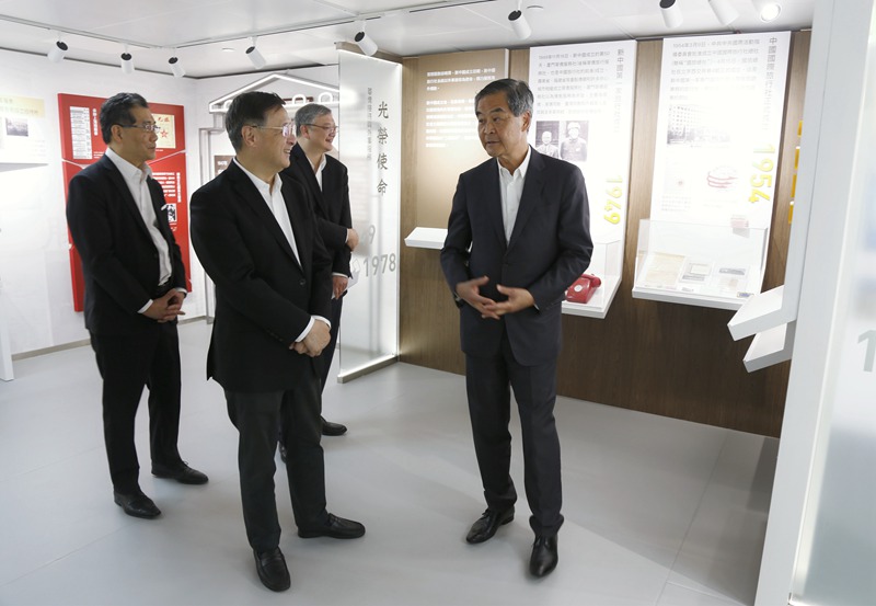 在參觀展館過程中,梁振英副主席仔細觀看陳列物品及視頻影像,認真聆聽展館講解,并憶述改革開放初期參加香港中旅社旅行團到內地游覽的往事,對集團在百年發展歷程中所做出的貢獻予以充分肯定。