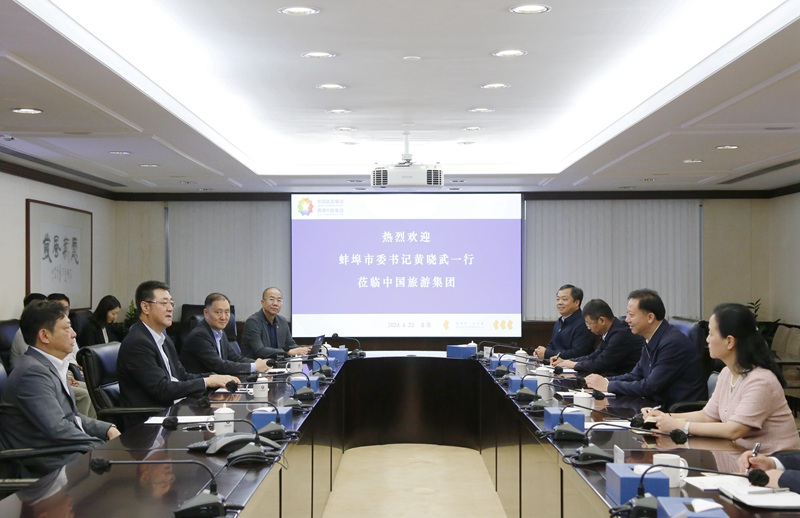 黃曉武書記對蚌埠歷史沿革以及文旅產業發展情況進行了簡要介紹。他表示,中國旅游集團作為旅游龍頭企業,具有旅游全產業鏈優勢,雙方合作前景廣闊。希望雙方密切交流對接,開拓合作空間,實現互利共贏。