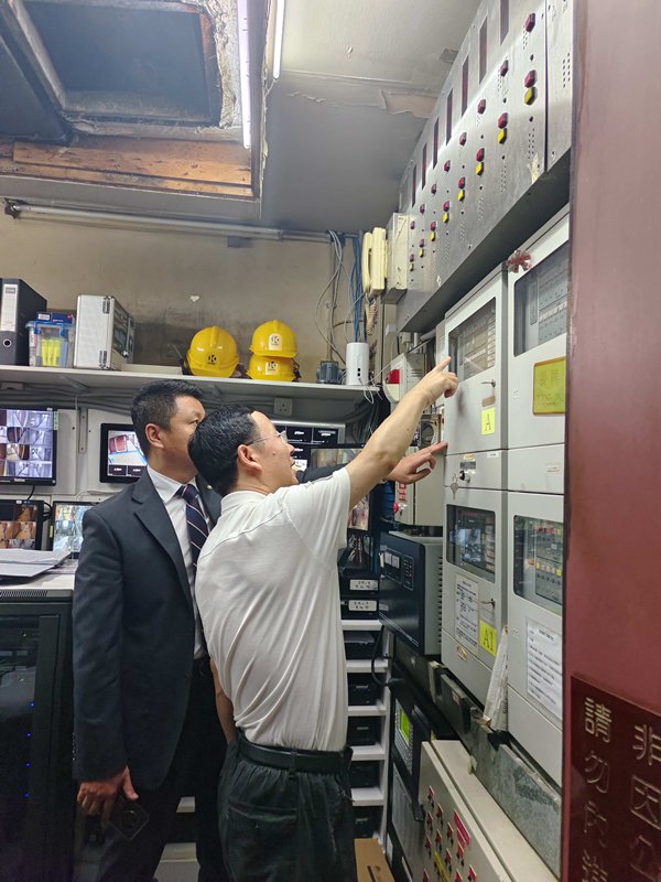 范云軍先后來到香港尖沙咀維景酒店、九龍維景酒店和旺角維景酒店,對客房、中西餐廳、廚房、監(jiān)控室、設(shè)備房、布草房、消控室、配電室等區(qū)域開展檢查。重點檢查了酒店廚房衛(wèi)生狀況、食品留樣及煮食器具的清洗消毒情況,以及安全出口及疏散通道是否暢通,應(yīng)急照明燈、滅火器、自動報警系統(tǒng)等安全、消防設(shè)施器材是否完好有效等情況。對有關(guān)設(shè)備的日常運行記錄、應(yīng)急處置方案及演練情況等進行了安全檢查。