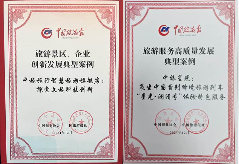 12月17日,第十一屆中國旅游產業發展年會在云南大理舉辦。本屆年會以“融合·創新·共進”為主題,由文化和旅游部產業發展司、中國報業協會指導,中國旅游報社、大理州旅投公司主辦,文化和旅游部、部分省市文旅行政部門、文化和旅游企事業單位代表等約200人參會。會上揭曉了“2024旅游產業影響力案例”,中旅旅行《智慧旅游旗艦店:探索文旅科技創新》榮獲“旅游景區、企業創新發展典型案例”,中旅資產《中旅星光:乘坐中國首列跨境旅游列車“星光·瀾湄號”體驗特色服務》榮獲“旅游服務高質量發展典型案例”。