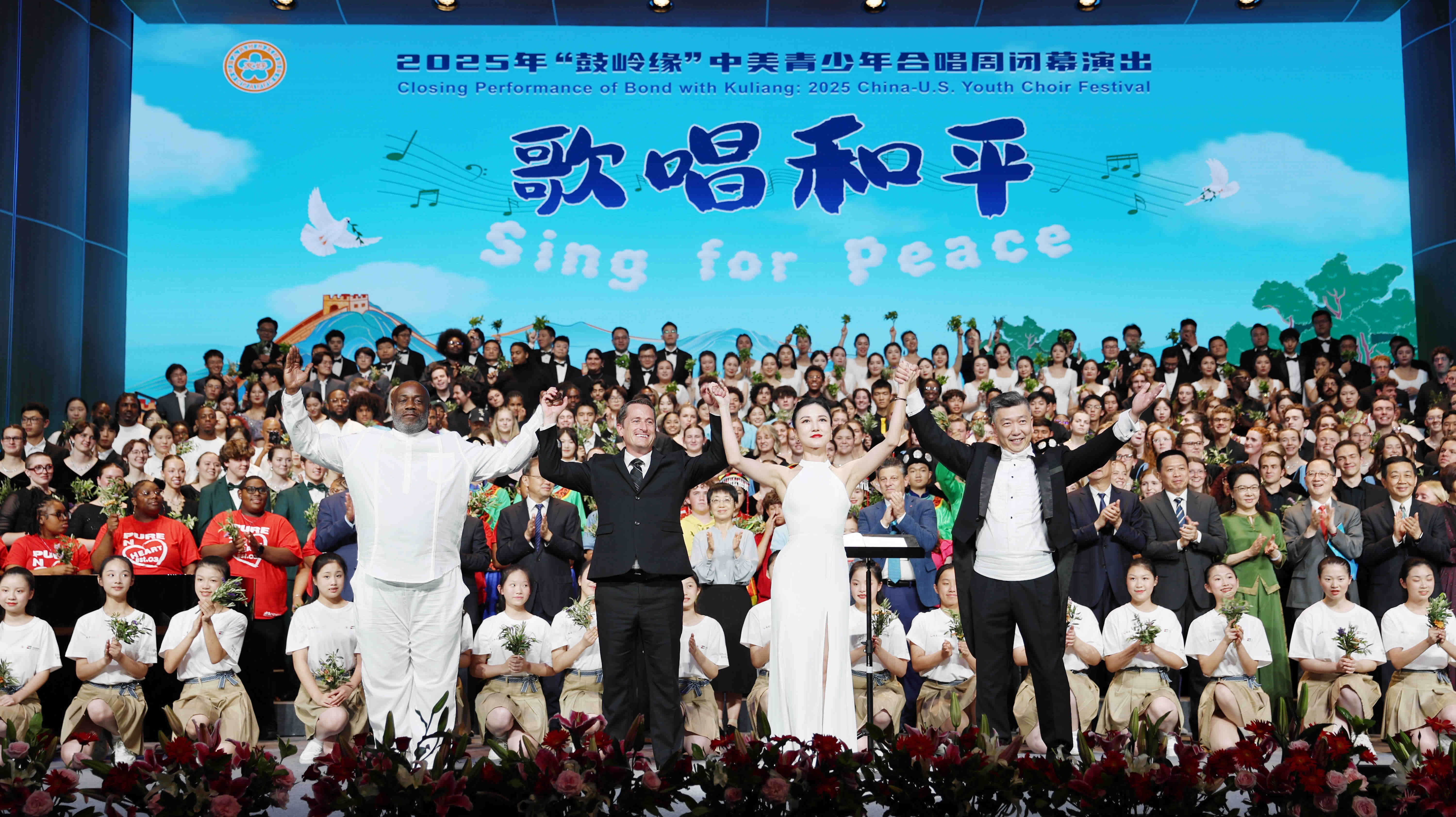 為貫徹落實(shí)習(xí)近平主席致“鼓嶺緣”系列交流活動(dòng)賀信精神,積極響應(yīng)“未來五年邀請(qǐng)五萬名美國青少年來華交流學(xué)習(xí)”倡議,由中國人民對(duì)外友好協(xié)會(huì)、福建省人民政府共同主辦,中旅旅行參與承辦的2025年“鼓嶺緣”中美青少年合唱周活動(dòng)在福州和北京兩地舉行。7月16日晚,合唱周閉幕演出在中央歌劇院上演,中國人民對(duì)外友好協(xié)會(huì)會(huì)長(zhǎng)楊萬明,福建省委副書記、福州市委書記郭寧寧,北京市委副書記游鈞,集團(tuán)副總經(jīng)理簡(jiǎn)易,美國駐華使館代表等共同觀看閉幕演出。