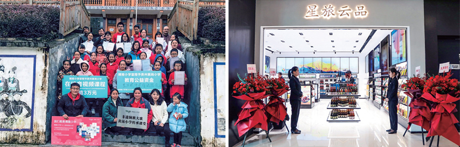 圖1-2:黃崗村研學旅游產品很受歡迎;星旅云品拉動扶貧銷售