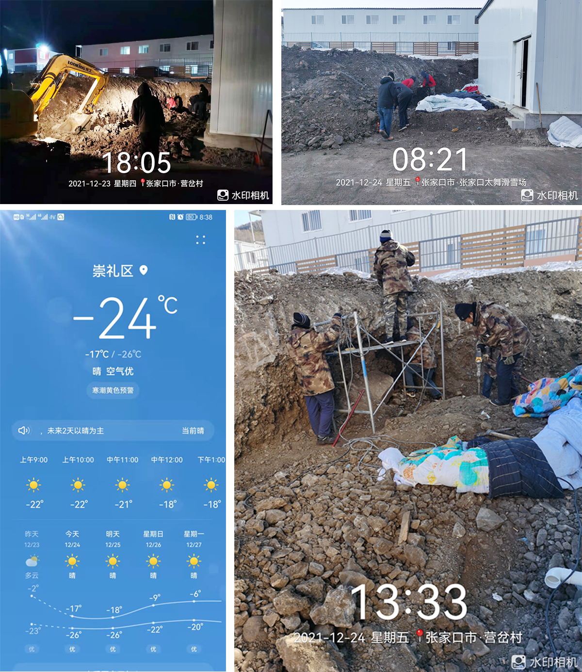 中旅酒店建設(shè)發(fā)展部高欣、陳厚江等組織施工方冒著低溫改造鍋爐儲水設(shè)施