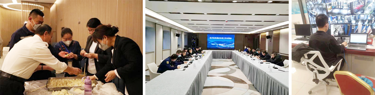 ——雪如意睿景酒店接待來自語言服務、體育、電力、志愿者、技術、醫療服務、防疫、賽事服務、食品安全、交通、醫療、安保等各個領域的近三百名保障人員。2021年12月31日晚,酒店精心組織相關保障人員一起包餃子,讓大家跨越各自領域,融為保障服務一家人。