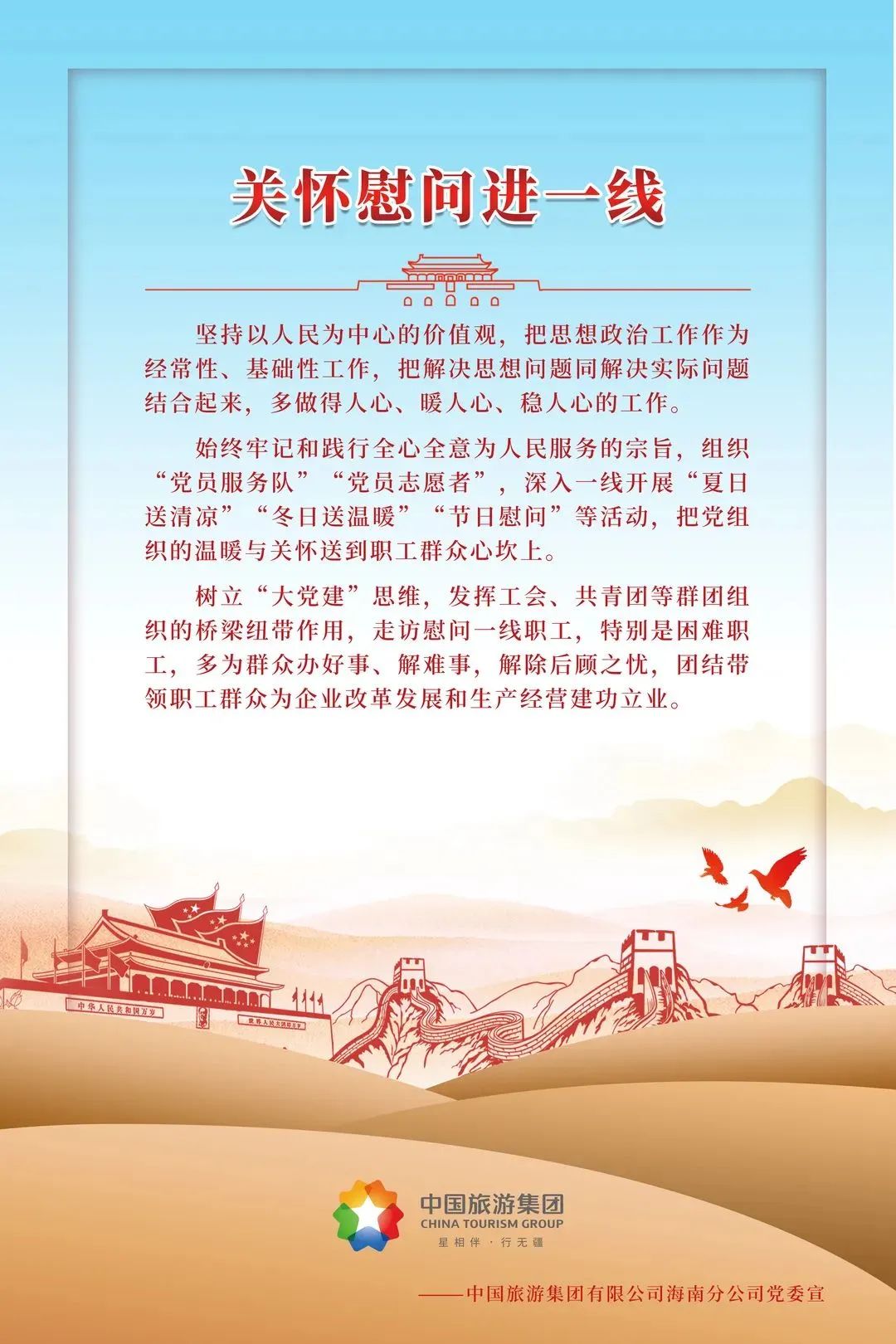 結(jié)合集團海南區(qū)域經(jīng)營特點,積極培育黨建品牌,服務(wù)業(yè)務(wù)發(fā)展,聯(lián)動各級黨組織打造了具有集團特色、海南特點的“四進一線”黨建工作品牌:“黨建文化進一線、組織生活進一線、黨員干部進一線、關(guān)懷慰問進一線”,把宣傳黨的主張、貫徹黨的決定、團結(jié)動員群眾、推動改革發(fā)展落到實處,強化黨建文化宣傳效果,得到廣大黨員、職工的熱烈響應(yīng),全面提升各基層黨組織的組織力,促進黨建工作與生產(chǎn)經(jīng)營深度融合,實現(xiàn)高質(zhì)量黨建引領(lǐng)集團海南業(yè)務(wù)高質(zhì)量發(fā)展。