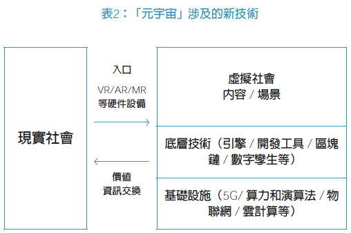 從技術(shù)迭代看,「元宇宙」沒有產(chǎn)生單一的顛覆性技術(shù),而是新技術(shù)的系統(tǒng)集成應(yīng)用。「元宇宙」的底層技術(shù)含了虛擬現(xiàn)實(shí)、人工智能、物聯(lián)網(wǎng)、區(qū)塊鏈、數(shù)字孿生等已經(jīng)有一定發(fā)展基礎(chǔ)的技術(shù)。「元宇宙」可以看做是數(shù)字化進(jìn)程中全鏈條的集群式創(chuàng)新,涵蓋了各類新技術(shù)。通過技術(shù)集成應(yīng)用,使價(jià)值、信息在虛擬和現(xiàn)實(shí)之間進(jìn)行實(shí)時(shí)、無(wú)限的流轉(zhuǎn)和交換。