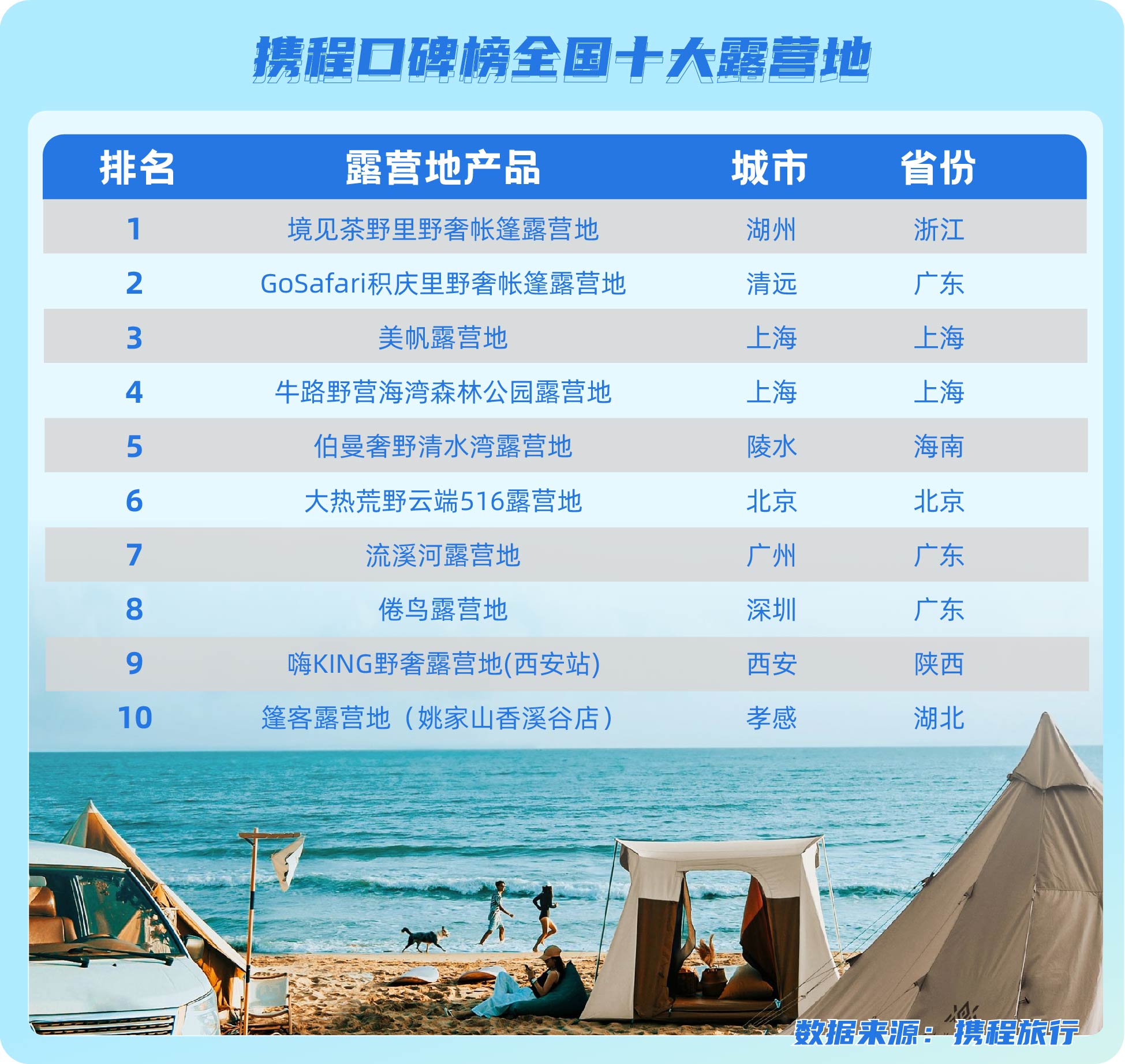攜程露營負責人坦言,“寶藏露營地”口碑榜的推出,是攜程在露營風口中的一次厚積薄發,而背景則是攜程平臺上露營消費的供需兩旺。