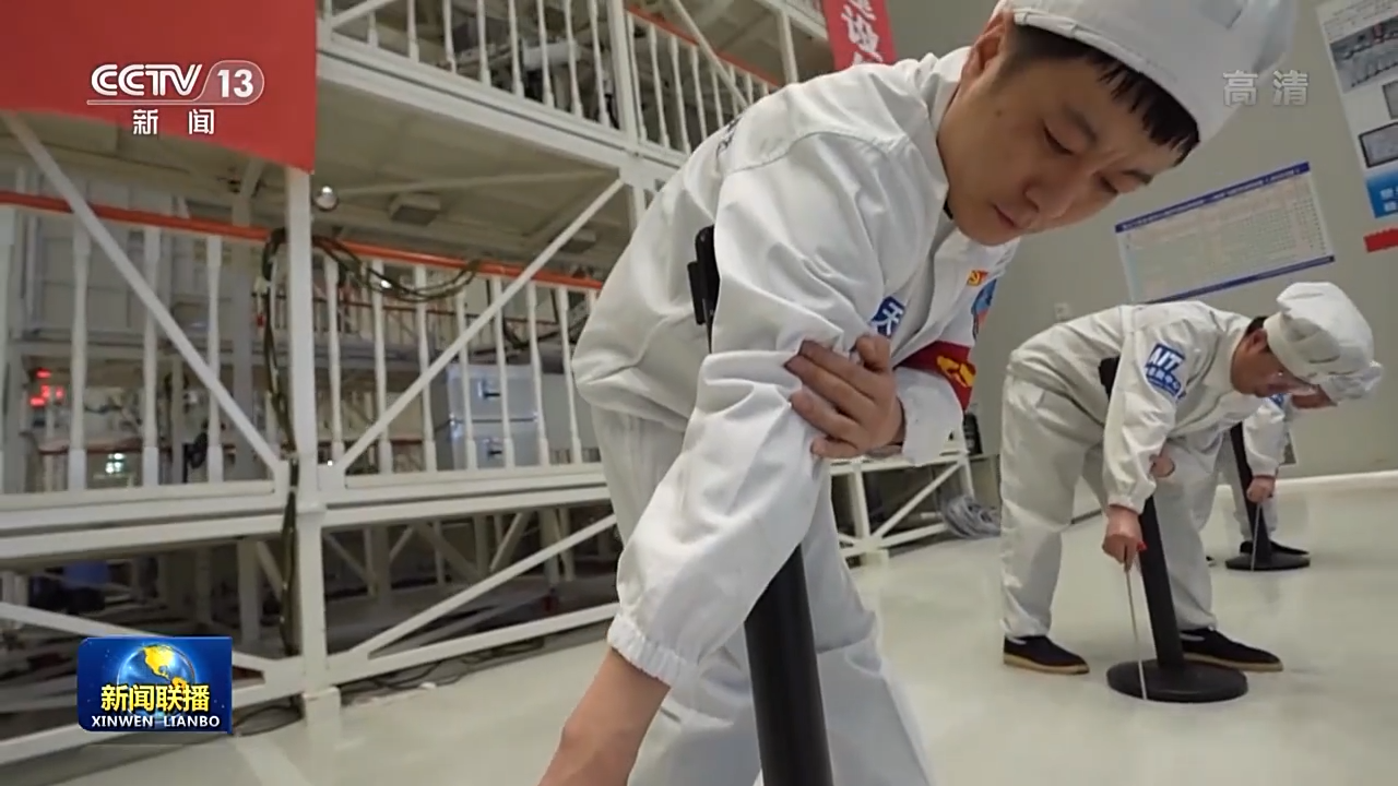 航天科技集團五院總環部神舟飛船總裝班組組長 張舸:要確保設備安裝平面與這個設備操作桿是一個垂直狀態,也就是90度,完全90度的狀態,才能夠確保它能很精準地插入到孔位。