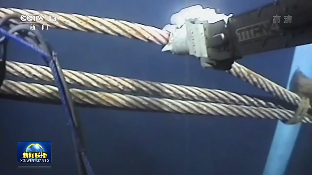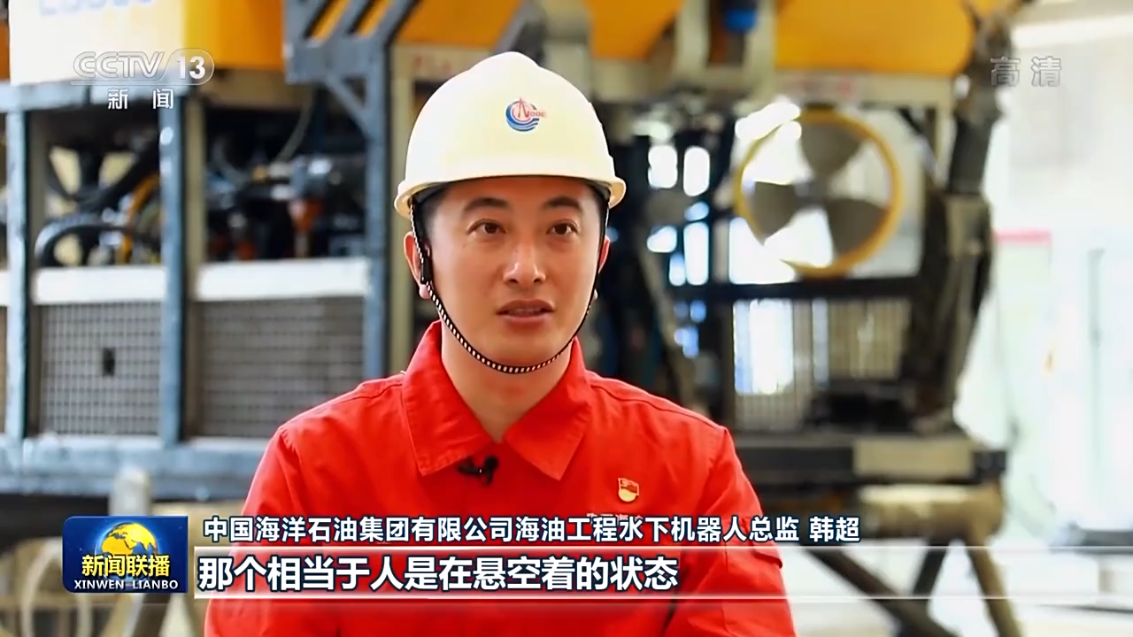 中國海洋石油集團有限公司海油工程水下機器人總監 韓超:你的手腳要并用,然后你要在抓的同時,后面你不要忘了還有一條臍帶纜是連著你的。你再稍微一用力,那通訊要不然斷了,要不然就絕緣報警。