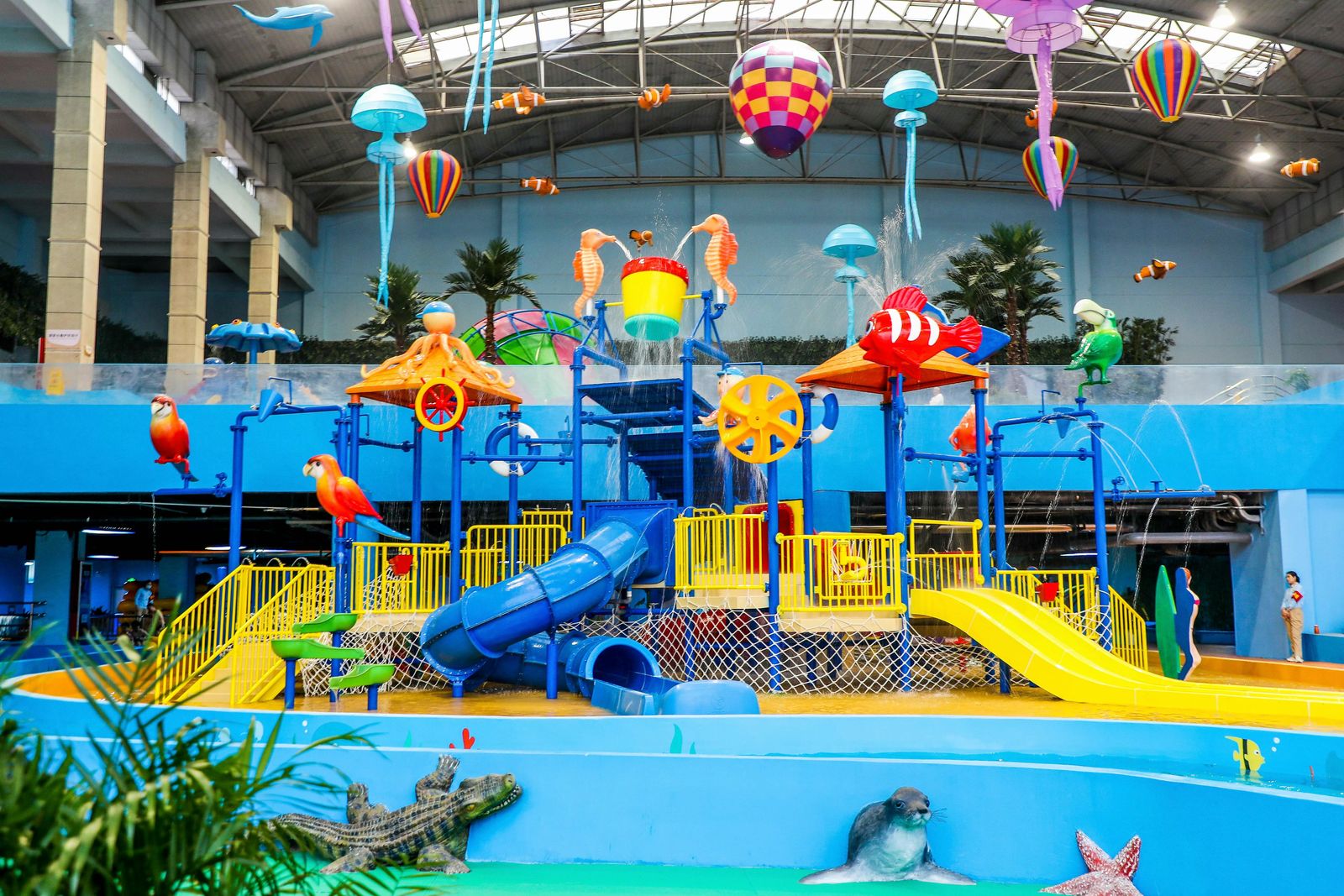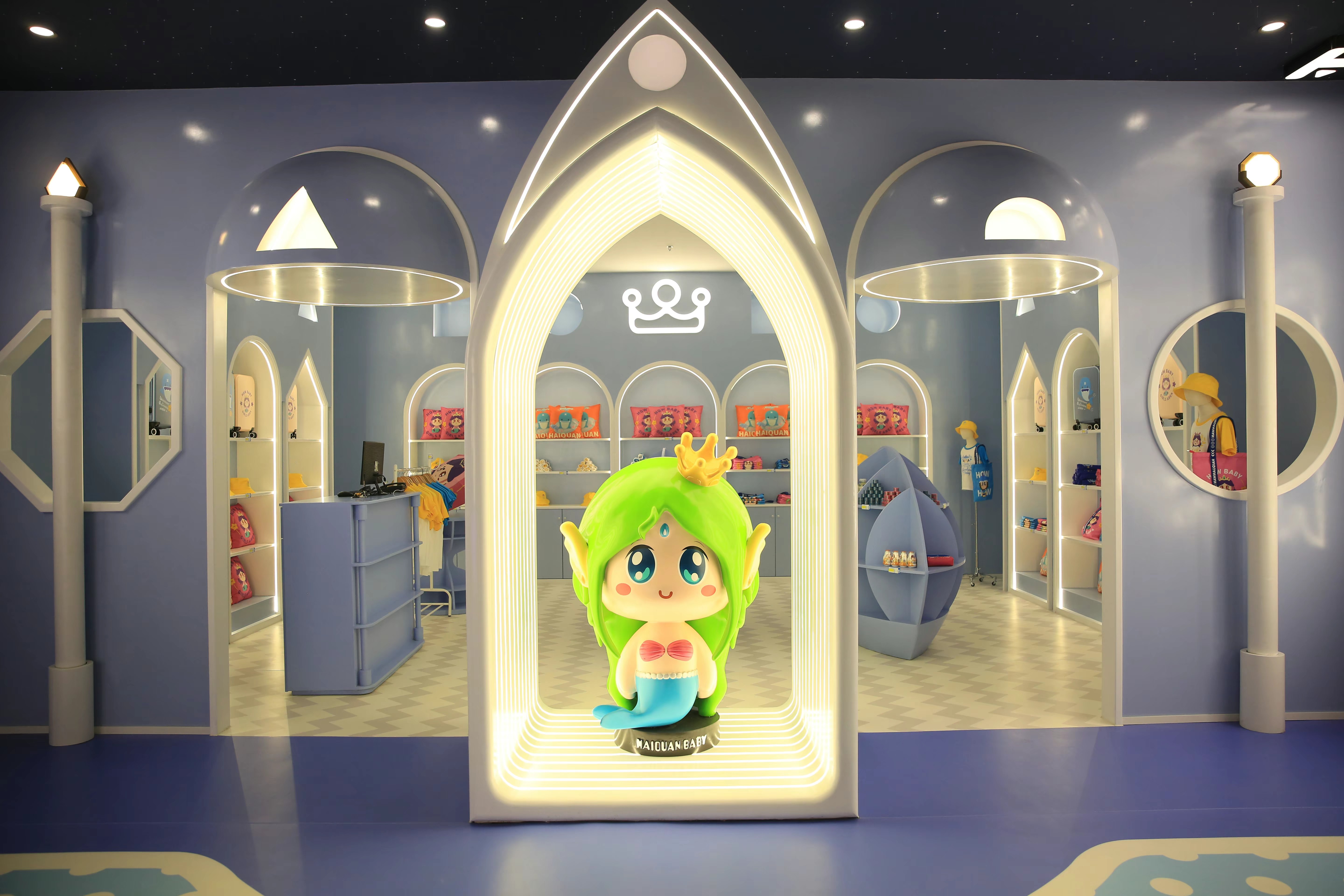 海泉寶貝親子樂園位于海泉灣都市娛樂溫泉二樓,運營面積2600平米,項目空間結合歐洲建筑及紋樣元素,同時以IP海洋生物元素為主題貫穿整個空間場景內,主要設施有:職業體驗小超市、機器人大戰、男女換裝、海洋生物觀賞區、小火車、旋轉木馬、沙屋、車站、勇士之城淘氣堡、書城、派對屋。應用現代兒童游樂場的設計手法及理念,重塑海泉灣品牌形象。擁有適合兒童身心發育需求的機動類、換裝體驗類、手工類以及軟式淘氣堡四大類兒童游樂設備,打造出創意空間、海泉之旅、智慧屋、勇士之城四大機動游玩區域,具有真正的文化+教育+親子+游樂的理念,延續文化與教育的同時,讓每個家庭能享受并沉浸其中,體驗不一樣的親子游玩空間。小朋友可以在這里玩耍,結交朋友,了解有趣的知識,學習體驗生活常識,與爸爸媽媽共同完成有趣的游戲任務,度過童話般的快樂時光。